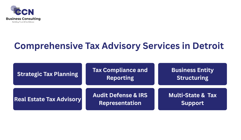 When it comes to Tax Advisory services Detroit, businesses need a partner who provides both breadth and depth. At CCN Business Consulting, we offer end-to-end tax solutions, including: